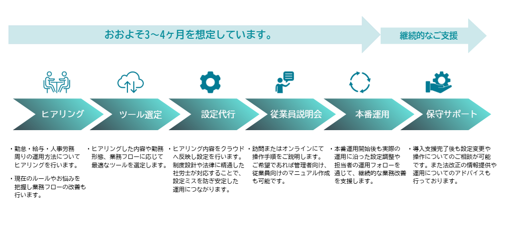 社労士事務所によるアウトソーシング支援によって継続的に安定した運用を実現します。