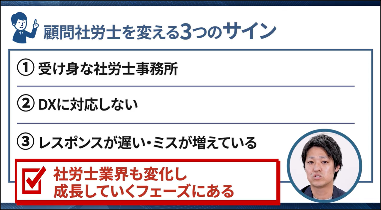 本記事では、多くの企業様からご相談をいただく中で見えてきた、「そろそろ顧問社労士を変えた方がいいかもしれない」と判断するための3つのサインについて、現役の社労士が詳しく解説します。